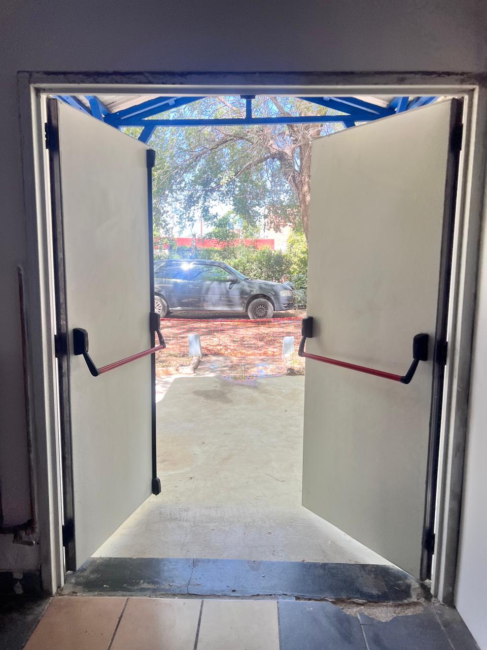 • Colocación de puertas de seguridad en teatro, comedor y secretaría de secundaria.